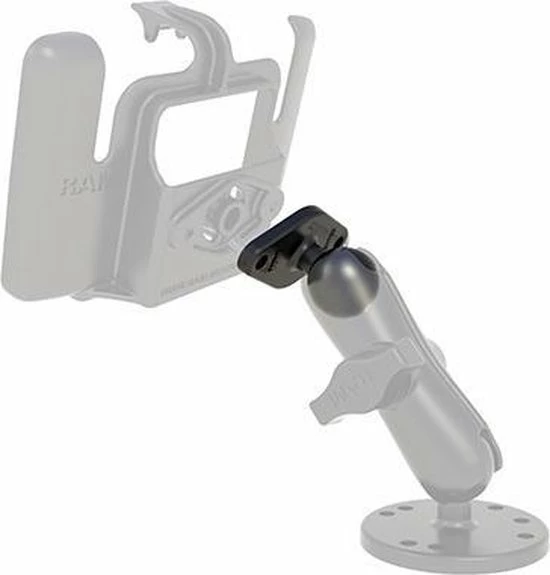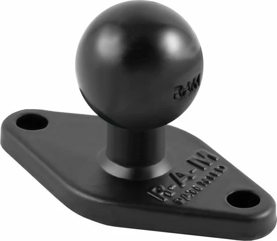 The RAM-B-238U consists of a 1″ diameter rubber ball connected at right angles to a 2.43″ x 1.31″ diamond base. The base has two holes 1.912″ from center to center, matches the industry standard AMPS hole pattern and will connect to a large variety of RAM Mount and third party cradles.