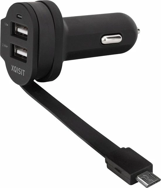Deze XQISIT Autolader maakt het voor jou mogelijk om meerdere apparaten tegelijk op te laden in de auto. In de twee USB-poorten kun jij jouw eigen oplaadkabel plaatsen. Even geen kabel bij je? Maak dan gebruik van de handige Micro-USB kabel die vast zit aan de autolader. Vastklikken en opladen maar!