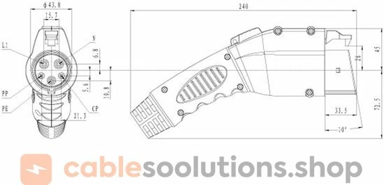 Veiligheid en certificering Alle connectoren zijn voorzien van de CE-markering en zijn door T?V onderworpen aan alle noodzakelijke tests om ervoor te zorgen dat onze oplaadkabels veilig zijn voor u en uw voertuig. Bovendien worden onze producten ook individueel getest voordat ze de fabriek verlaten. Wat kan ik bouwen met de stekker? Deze stekker wordt geleverd als onderdeel. Dit is GEEN complete oplaadkabel. Andere vereiste onderdelen moeten apart worden aangeschaft. Deze plug wordt geleverd als een onderdeel inclusief de juiste weerstand die nodig is voor de montage. Dit is geen complete oplaadkabel. U de hier aangeboden componenten gebruiken om een complete type 1- of type 2-oplaadkabel te monteren voor zelfassemblage. Zoek ook naar andere componenten zoals stekkers, oplaadkabels en accessoires zoals wandbevestigingen in onze webshop. Houd er rekening mee dat de andere geselecteerde componenten ook overeenkomen met de maximale amp?re en fase van dit onderdeel Gebruik Deze type 1 (vrouwtje) stekker met 32A is geschikt voor het zelfbouwen Mode 2 en Mode 3 laadkabels. U kunt een complete oplaadkabel samenstellen met accessoires voor zelfmontage met de hier aangeboden componenten. Zoek ook naar andere componenten zoals kabels en muurbeugels in cablesoolutions.shop. PE-PP weerstand Alle type 1-stekkers en oplaadkabel hebben een weerstand tussen de aarde (PE) en de Pilot Pin (PP). Dit wordt bepaald door het oplaadpunt en de auto of * dat de plug is geplaatst * dat de plug dus kan worden vergrendeld * de meter van de kabel en dus de maximale stroom Elke plug wordt geleverd met de juiste weerstand die op de stekker past. * 16 amp?re pluggen worden geleverd met een weerstand van 220 ohm * 32 amp?re pluggen worden geleverd met een weerstand van 680 ohm Houd er rekening mee dat de PP-PE-weerstand aan beide uiteinden van de kabel moet worden ge?nstalleerd Welk gereedschap heb ik nodig? Deze stekker moet worden gekrimpt op een EV-oplaadkabel hier moet gebruik gemaakt worden van een 2.5mm2 (16A) of 6mm2(32A) krimptang. Zoals onderstaande. Daarnaast heeft u een schroevendraaier, een striptang en een kniptang nodig. Waar kan ik deze stekker gebruiken? Deze stekker is bedoeld voor de autozijde, d.w.z. de laadpoort van de auto. Het past niet in het stopcontact een laadpunt. Wat is de optimale laadkabellengte? Als u de laadkabel op een vaste plaats gebruikt, zoals thuis of op het werk, kiest u de optimale lengte voor uw situatie. Meestal is dat 4 of 6 meter. Als de kabel voornamelijk wordt gebruikt op de weg of op verschillende plaatsen (waar een ander voertuig zich tussen het oplaadpunt en uw voertuig kan bevinden), raden we aan om een langere lengte te kiezen: 6 of 8 meter is in dit geval een goede keuze. Hoe zwaar is een oplaadkabel? Het gewicht van een complete laadkabel zonder de stekker varieert, afhankelijk van de kabelkeuze, tussen 210 gram en 540 gram per meter. Als u bijvoorbeeld een laadkabel (16A met 3 fasen) combineert met 8 kabellengte (8 x 310 gram) en 2 stekkers uit ons assortiment (2 x 500 gram), is het resultaat een totaalgewicht van 3,48 kilogram. Wat zijn de oplaadsnelheden? Een overzicht van mogelijke oplaadkabelkenmerken en de oplaadprestaties: * 16A met 1 fase = max. 3,7 kW * 20A met 1 fase = max. 4,6 kW * 32A met 1 fase = max. 7,4kW * 16A met 3 fasen = max. 11kW * 32A met 3 fasen = max. 22kW Veiligheid Let uiterst voorzichtig bij het bouwen van de laadkabel in eigen huis. Het wordt aanbevolen om de constructie alleen uit te voeren met gedegen voorkennis of door een getrainde professional.