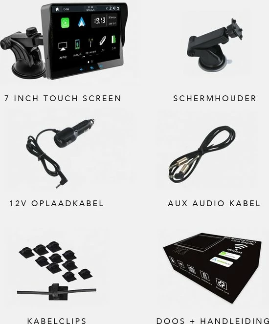Het is een universeel scherm dus te gebruiken voor elke auto. Met Android auto en wireless carplay functie. Dankzij het universele scherm geniet je in mum van tijd van de vele functies, zoals navigatie, films, muziek en bellen.