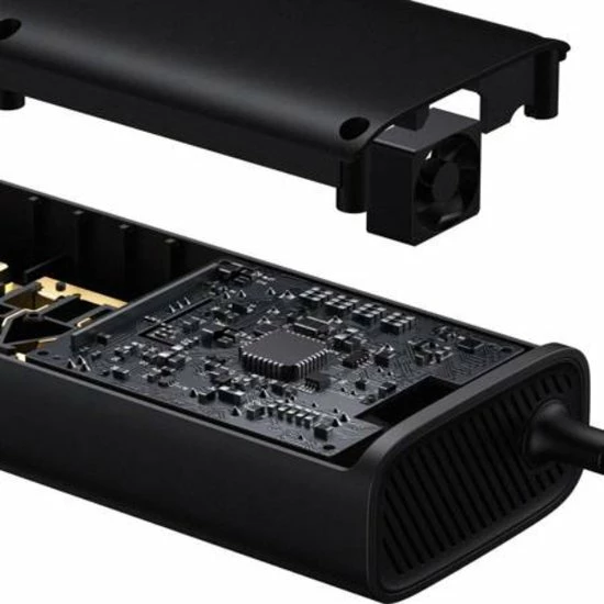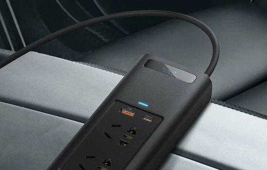 Met het product van Baseus kunt u snel de energie van meerdere apparaten tegelijk vernieuwen, met een maximaal vermogen van 150W. Daarnaast valt de omvormer op door zijn stabiele en veilige werking. Dankzij AC-, USB- en USB-C-poorten laad je apparaten zoals een laptop, telefoon, tablet, powerbank of handventilator succesvol op.
