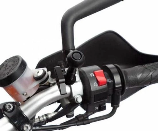 Deze bevestiging is ontwikkeld voor gebuik aan een spiegel/stang. Meet de diameter van de draad van je spiegelbevestiging, gebruik de 8mm of de 10 mm adpater tussen de spiegel en de stang/stuur. De ideale oplossing voor een grote range motoren en scooters. Met een verstelbaar bevestigingsschroef kan de hoek van de houder verticaal worden geplaatst wanneer deze niet wordt gebruikt..