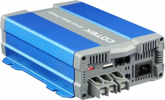 De Cotek CX1235 batterijlader gebruikt een 3-traps laadcyclus om loodzuur-, Li-ion-, gel- en AGM-type batterijen veilig en betrouwbaar op te laden. De lader heeft een ingebouwde beveiliging tegen kortsluiting, overspanning, oververhitting en uitbranden. De CX1235-oplader kan communicatie op afstand bieden via een beschikbare afstandsbediening of een RS-232-verbinding.