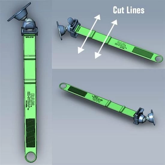 The RAP-SB-187-GA47 consists of the RAM EZ-Strap? base, double ball SHORT arm, diamond adapter base and high strength composite cradle. The strap can be cut to fit tubing, square rails and irregular shapes from 0.5″ to 2.58″ in diameter. Multiple adjustment points allow you to move the mount to your optimum viewing position. This mount rotates 180 degrees.