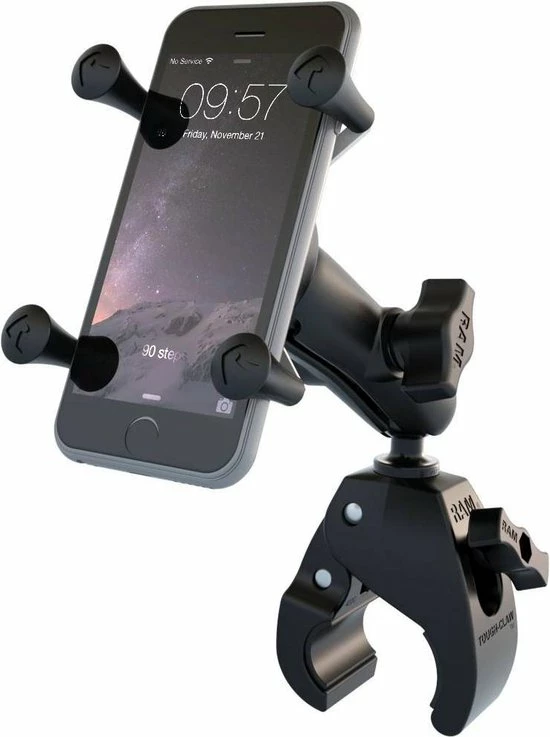 The Universal X-Grip? Mount for Smartphones consists of the Tough-Claw? base, SHORT length double socket arm and universal spring loaded X-Grip? holder for smartphones. The X-Grip? holder has a clean and clever four leg design that sports great holding power without hiding your smartphone behind foam pads and plastic. The X-Grip? holder expands and contracts for perfect fit of most smartphones.