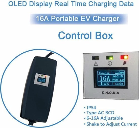Uitgang ???? Khons Type 2 Portable Laadpunt Met Stekker Voor Normaal Stopcontact | 13A, 1 Fase 5 Meter ⌛